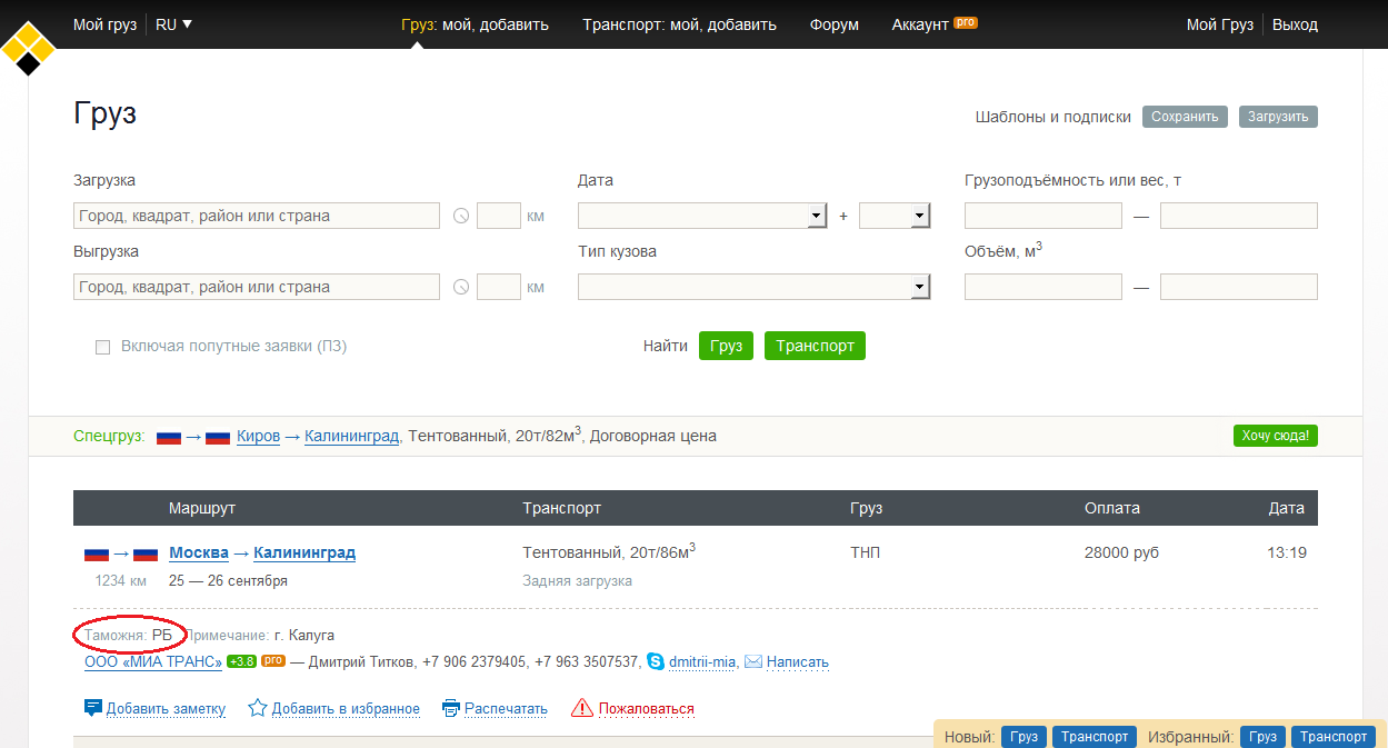 Хотя таможенный пункт является одним из существенных условий перевозки (например, между «Сириусом» и Советском 120 км) ее часто не указывают. Мы добавили отдельное поле, и надеемся, что оно поможет внести ясность в вашу работу.