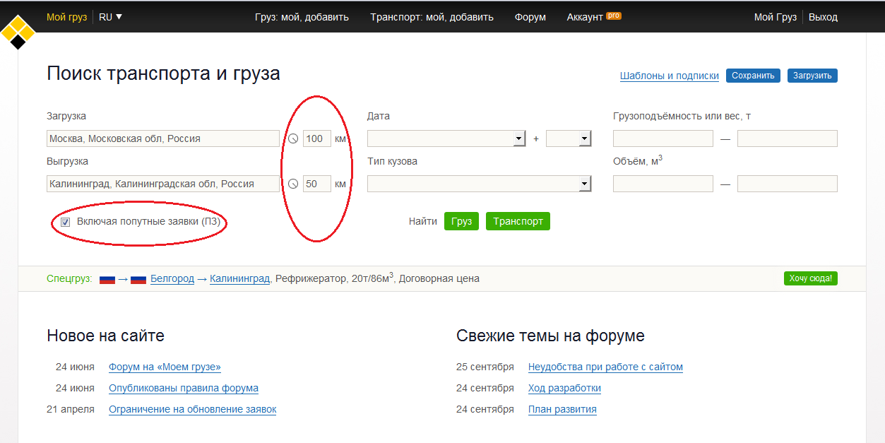 Поиск попутных заявок25 сентября 14 25 сентября 14 | Возможность поиска попутных грузов.