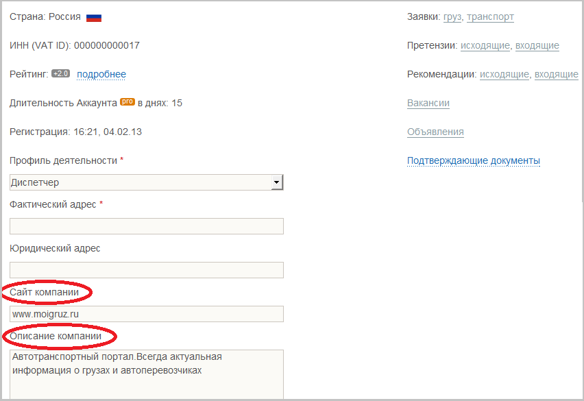 Наряду с логотипом, пользотели Аккаунта pro могут разместить в профиле описание компании и ссылку на сайт.